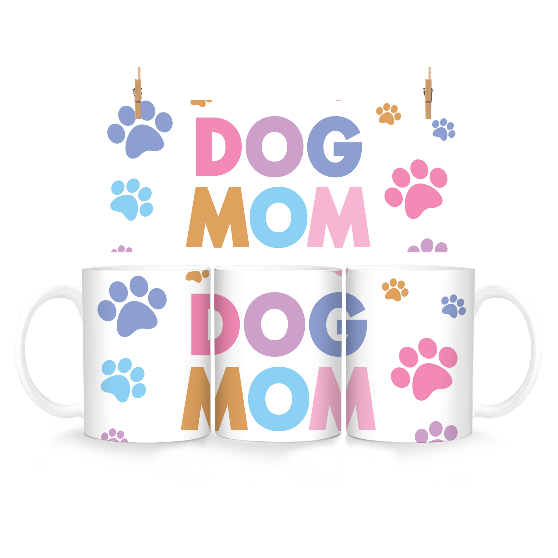 DOG MOM – Keramiktasse mit bunten Pfotenabdrücken