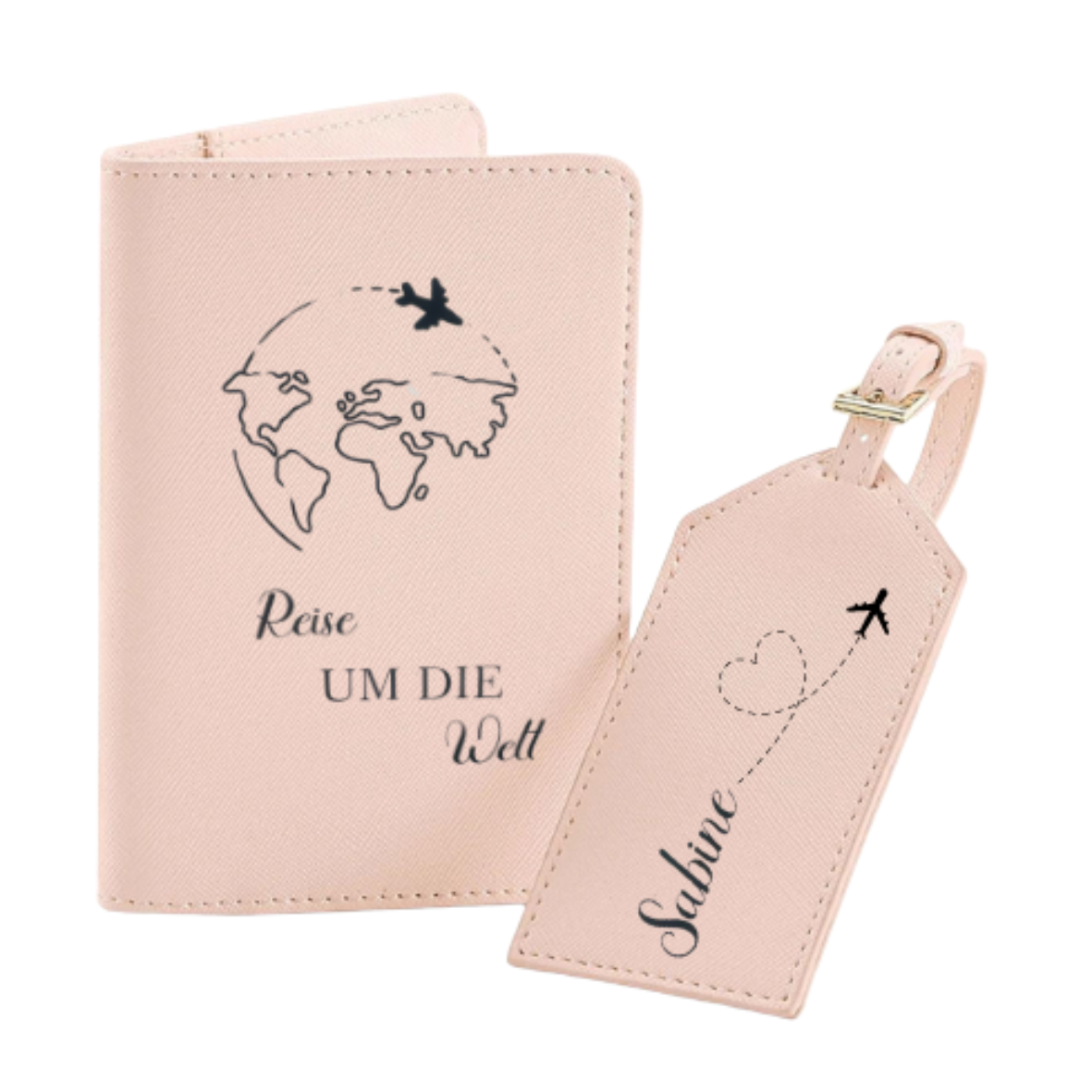 Mach deine Reisen noch schöner und einzigartiger mit unserer personalisierbaren Reisepasshülle inklusive Kofferanhänger.